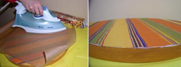На высохшую поверхность укладываем и разравниваем салфетку, приглаживаем ее руками. На нее укладываем кусок бумаги для выпекания и горячим утюгом от края начинаем приглаживать.