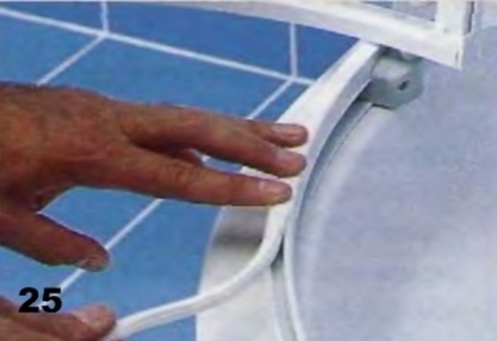 • Перед тем, как обрабатывать места примыкания деталей герметикам, необходимо собрать душевую кабину (к поддону закрепляются направляющие и боковые стенки, присоединяется верхняя часть, шланги).