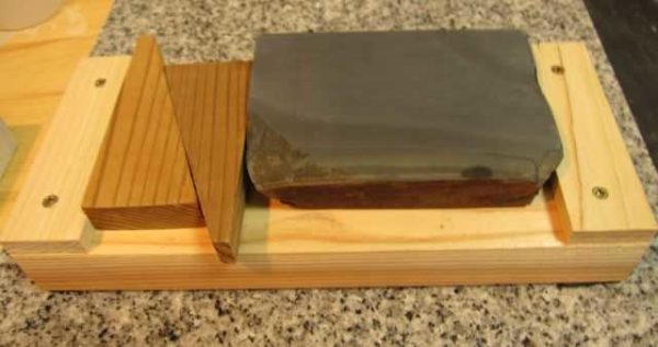 Форма точильного камня для заточки ножей — брусок, причем желательно чтобы он его длина была намного больше длины лезвия — точить проще. Удобны бруски с двойным зерном — с одной стороны более крупный, с другой — более мелкий. Для заточки ножей обычного назначения достаточно иметь два бруска со средним зерном (разным) и два мелких (один можно очень мелкий).