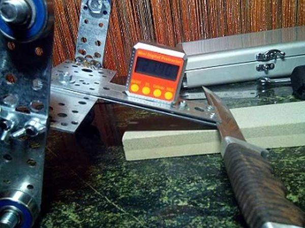 Из сказанного следует, что приспособление для заточки ножей должно иметь возможность выставления требуемого угла заточки. И это — основная сложность при его проектировании и изготовлении.