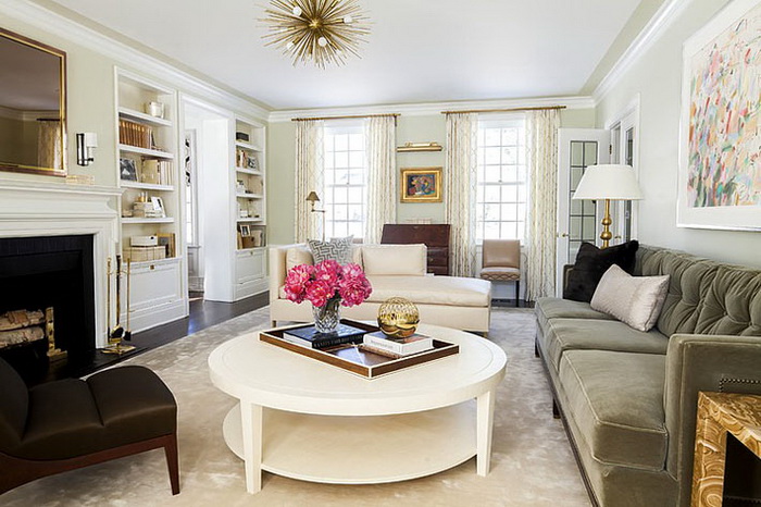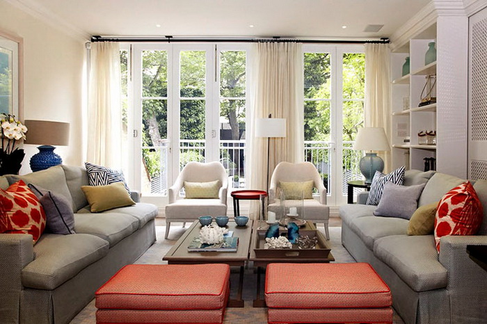 Симметричный способ расстановки подходит для комнат правильной формы. Это наиболее простой вариант, когда расставляются парные предметы вокруг выбранного центра. В некоторых случаях помещение с расставленной парной мебелью выглядит скучно и слишком правильно, формально, что не всегда подходит для жилых помещений.