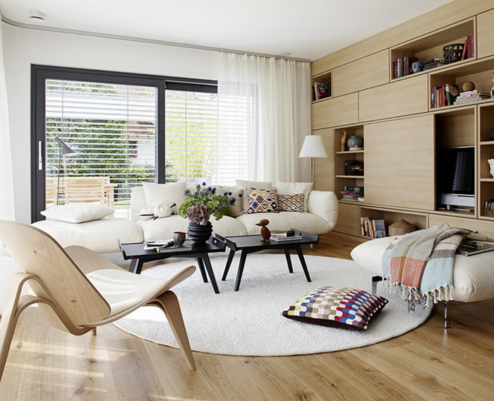 При круговом способе предметы мебели расставляются по кругу от выбранной фокусной точки в интерьере. Центром в данном случае может стать красивая большая люстра, обеденный стол или, например, ковер, а вся остальная мебель ставится так, чтоб зрительно получился круг. Такой способ наиболее приемлем для гостиных или столовых. Следует добавить, что предметы по кругу могут быть расставлены как симметрично, так и в несколько произвольном порядке.