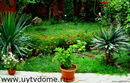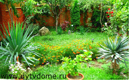 Даже на маленьком участке можно постараться развить прекрасный рокарий или организовать красивые клумбы.  Основную часть оформляемой территории следует засеять газоном.