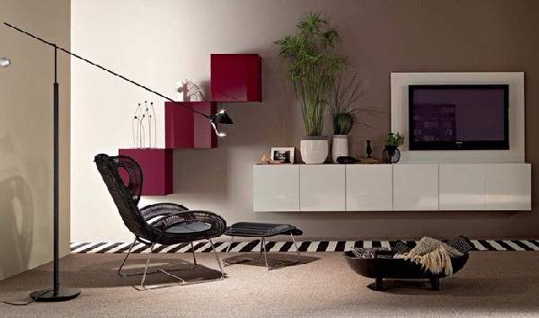 - возможность размещения дополнительных аксессуаров. В современном оформлении интерьеров существует тенденция к применению минимального количества элементов мебельного гарнитура, за счет их функциональности, когда один предмет мебели может заменять два или три. В наше время, производитель старается всячески воплощать эту идею, благодаря чему, тумба под телевизор в современном стиле может иметь дополнительные ниши, полочки или отверстия для размещения необходимых аксессуаров и хранения вещей;