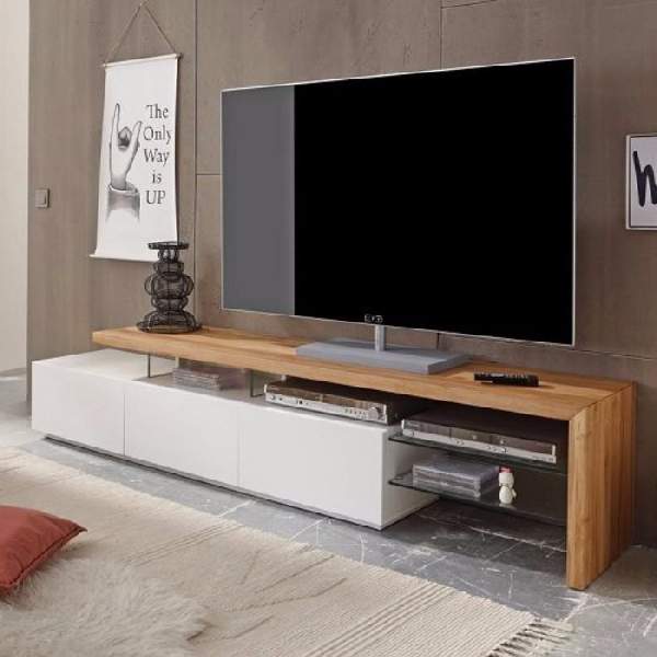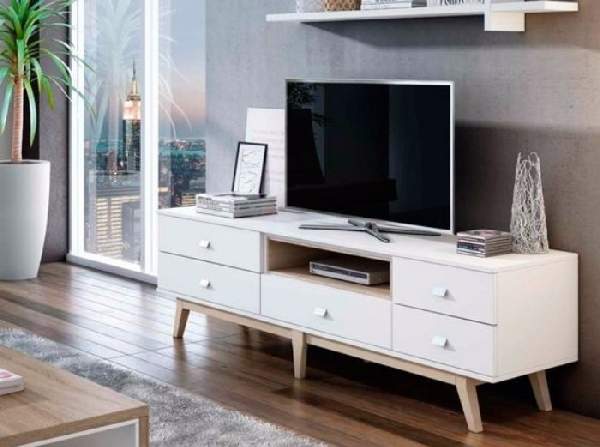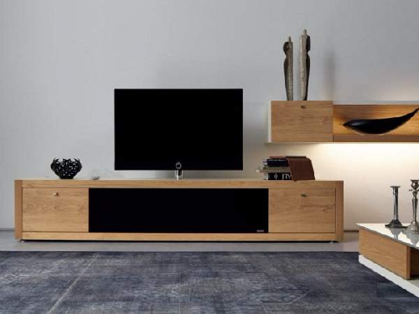 Мебель для ТВ может быть изготовлена из таких материалов, как натуральное дерево, ДСП, МДФ, пластик или стекло. Самыми надежными и долговечными признаны модели, выполненные из дерева, но они имеют сравнительно высокую цену. Чаще всего их используют в классическом дизайне, но так как, тумбы под телевизор современные зачастую изготавливаются с использованием нескольких материалов — они вполне могут вписаться и в другие стили.
