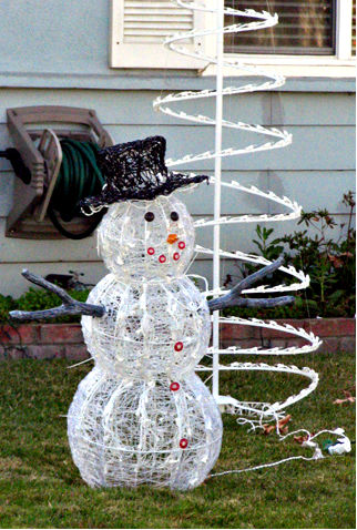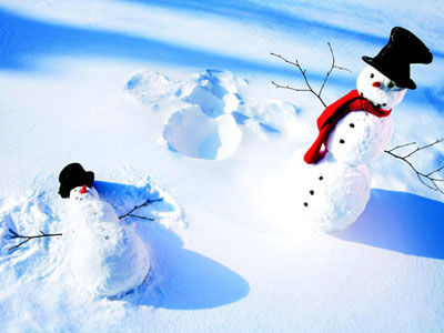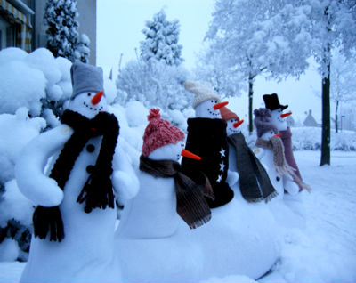 Если погода и наличие снега позволяет, можно слепить семью снеговиков, а особые умельцы, могут вырезать из снега целые крепости. К тому же подобное времяпрепровождение сплотит всю семью. Кроме того снеговиков можно сшить из ткани, набить поролоном, украсить странными шапками и шарфами, а на улице закрепить при помощи пришитых к туловищам снеговиков лент и забитых в землю колышек.
