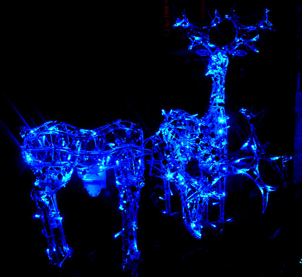Кроме того в специализированных магазинах можно приобрести готовые проволочные конструкции с подсветкой в виде зверей — оленей, зайцев, медведей и т.д. При особом таланте, подобные конструкции можно создать самостоятельно, в таком случае декор будет наделен частичкой Вашей души, что может быть лучше!? Если грамотно расставить такие украшения, можно воссоздать сказочный мир у себя дома, можно приобрести фигурки Деда Мороза, Снегурочки и Снеговика, возле которых поставить мешок с «подарками», вот Вам и готова тематическая сценка, с раздариванием подарков. Вообще, такие конструкции лучше устанавливать на открытых частях участка, на фоне дома или статных деревьев они будут смотреться просто великолепно!