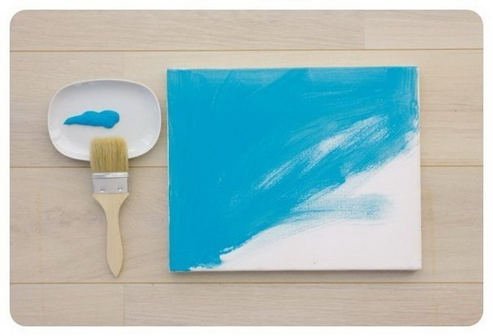 Наносим голубую краску на все полотно.
