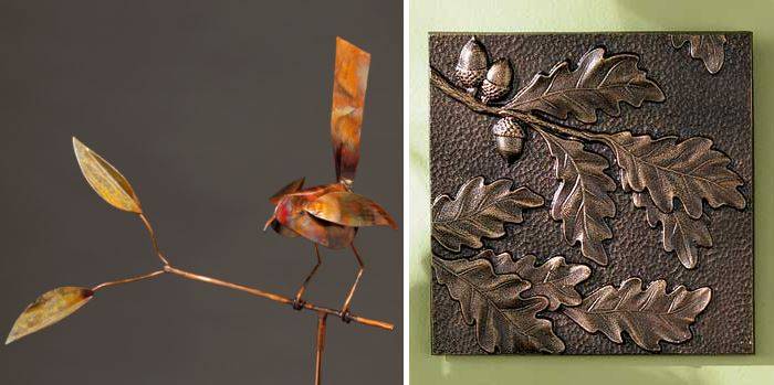 Металл также является элементом природы. Однако далеко не каждый металл позволяет создать в доме природную атмосферу (особенно это относится к блестящим полированным изделиям). Зато медь точно поможет. Она выглядит и «натурально», и роскошно, и старинно, а потому идеально подходит для украшения интерьеров!