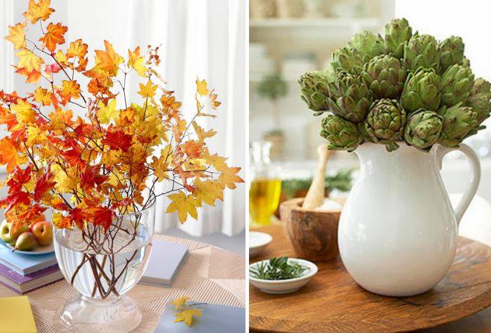 Украшение дома едой — один из самых последних трендов в области дизайна интерьеров. Используйте лимоны, лаймы, яблоки и виноград, комбинируйте их с другими съедобными элементами (например, с веточками мяты, каштанами или орехами), и создавайте яркие объекты для визуального и ароматического наслаждения!