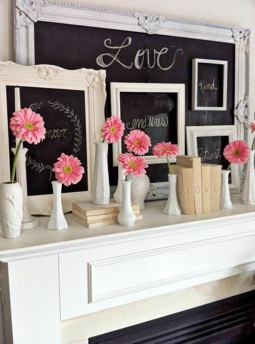 Актуальны для создания романтичного дизайна интерьера любые статуэтки, изображающие влюбленные пары. Их следует разместить на камине и дополнить свечами, веночками в форме сердец. Уместны живые цветы.