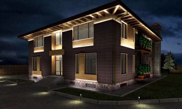 Фасадное освещение загородного дома — это целая наука. Правильно расставленные световые акценты, сделают практически из любого дома произведение искусства. Важно помнить, что подсветка фасада дома должна планироваться еще во время проектирования, до начала строительных работ. Это поможет предотвратить всевозможные проблемы и учесть нюансы еще на этапе строительства, когда все можно изменить. Чтобы добиться хорошего результата, необходимо знать некоторые приемы светодизайна. С помощью подсветки фасада, можно подчеркнуть выигрышные элементы здания и в тоже время скрыть недостатки дома. В умелых руках ваш дом может превратится в уютное здание, величественное сооружение, в общем в то, чего душа пожелает.