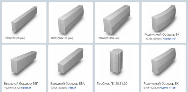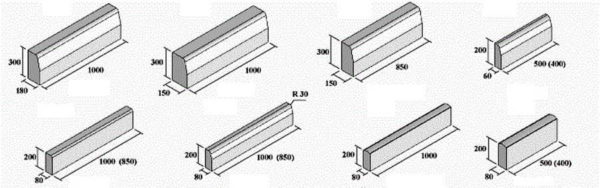 Виды бетонных поребриков и бордюров