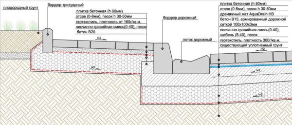 Схема установки бордюра с водосточным желобом