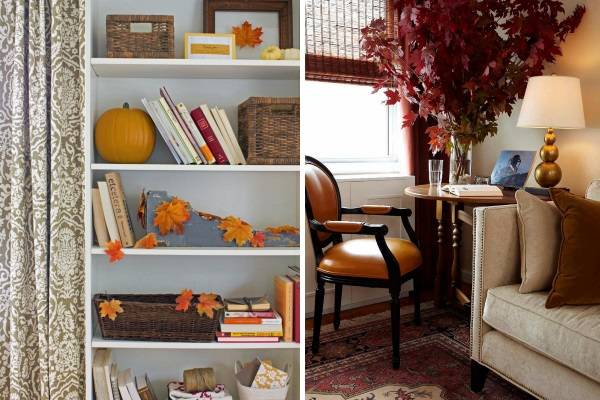 Осень в интерьере может быть создана не только с помощью осенних красок и материалов, но и с применением ностальгических акцентов. Старые книги, географические карты, фото в рамках или открытки могут сделать ваш осенний интерьер очень изысканным и приятным не только для глаз, но и для души.