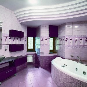 Светлые оттенки фиолетового цвета визуально увеличат пространство ванной, а боле темные и насыщенные необходимо использовать только в той ванной, где есть хорошее освещение.