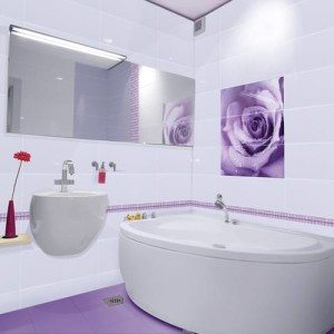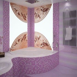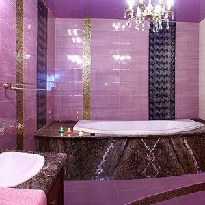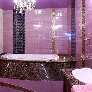 • Пространство, которое оформлено мозаикой или керамической плиткой нежного цвета лаванды, превращается в колыбель полного расслабления и спокойствия.