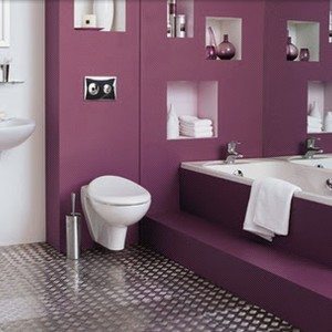 • Совет: при покупке фиолетовой сантехники, необходимо обратить внимание на то, что оттенки и тона фиолетового цвета у разных производителей могут отличаться, поэтому покупать надо комплект (умывальник, унитаз, ванна) одного производителя.