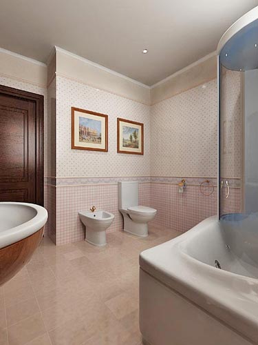 • кафель на полу и потолок — самого светлого и нежного оттенка;
