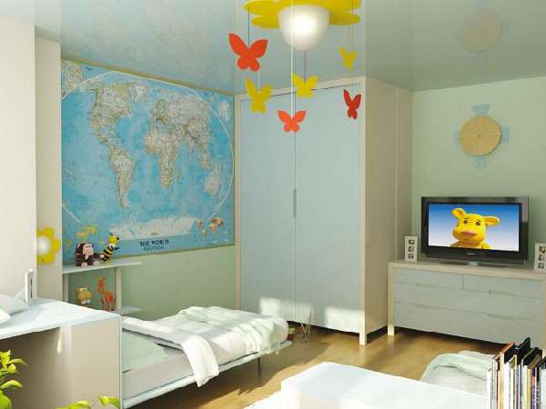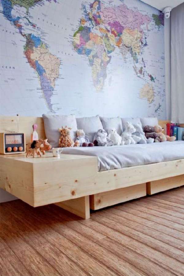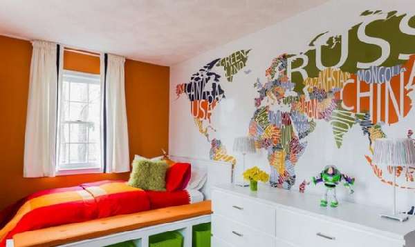 А вот, пожалуй, самый интересный вариант, который, к тому же, помогает детям выучить географию. Это фотообои с картой мира на стену для детской комнаты. Ребенок любого пола будет рад, если оформить интерьер подобным образом. Ещё одним неоспоримым преимуществом является тот факт, что детские фотообои с картой мира идеально впишутся в любой интерьер.
