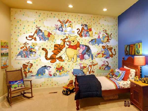 Ну и конечно же куда без мультфильмов? Их любят все дети вне зависимости от пола. Dekorin подобрал несколько примеров такого интерьера детской комнаты в следующих фото. Такие сказочные детские фотообои ваши детки обязательно оценят.