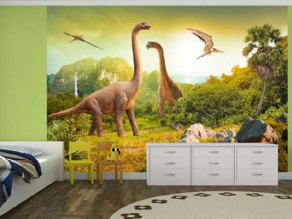 А вот ребенку постарше больше понравятся обои с изображениями реалистичных динозавров.