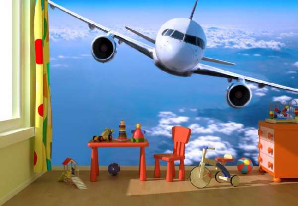 Тема самолетов также пользуется популярностью у мальчишек. Спросите мнение вашего ребенка, ведь, возможно, он давно мечтал о детских фотообоях с изображением самолетов. Ниже вы можете увидеть несколько примеров такого интерьера.