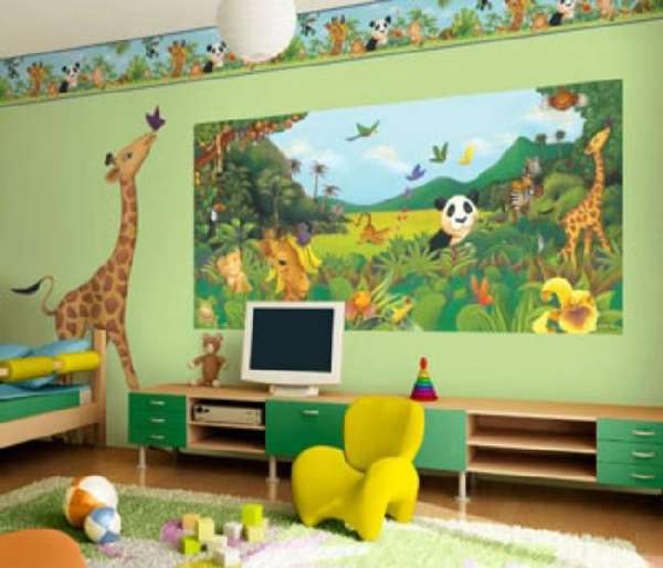 Что может быть веселее лесных зверушек, изображённых на стене? Dekorin предлагает использовать фотообои с джунглями в детской комнате. Только посмотрите как здорово и весело они смотрятся! Такие детские фотообои с животными точно придутся по вкусу как мальчишкам, так и девчонкам.