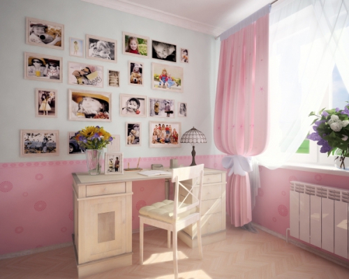 В детской уместно будут смотреться фотографии ребенка, показывающие, как он растет. Рамки можно выдержать в одном стиле — детском, «фруктовом» или «морском.