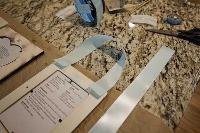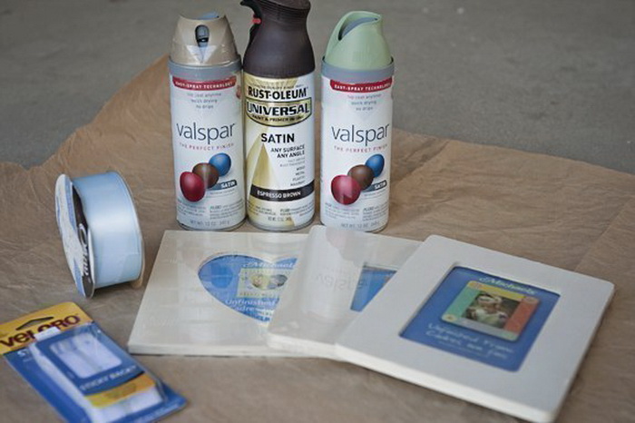 Нам потребуется: фоторамки, атласная лента, краски, измерительная лента или линейка, степлер или клей. Далее: