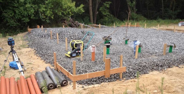 Щебень засыпан, установлены закладные элементы канализации и водопровода