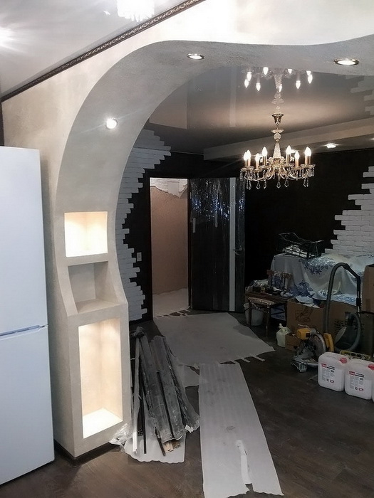 Декор таких арок легко подобрать к любому цвету и дизайну, потому и сооружение их уместно в любом помещении с любым стилем.