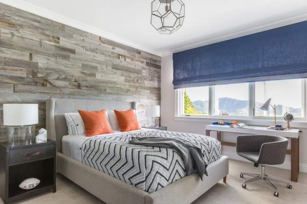 Выбирайте синий для таких крупных элементов интерьера, как шторы и стены, а оранжевый используйте на мелких деталях, а также постельных принадлежностях, тумбочках, светильниках и т. п. Великолепный выбор цвета для детской комнаты мальчика и для подростков!