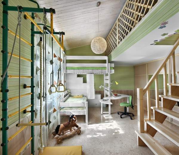 6. Детская комната в зеленом цвете с желтым