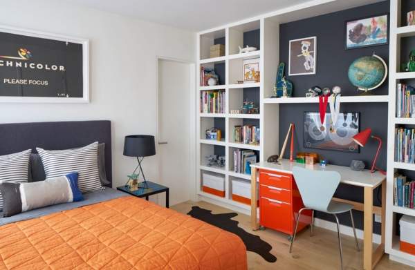 2. Интересные цвета для детской комнаты мальчика — оранжевый и синий