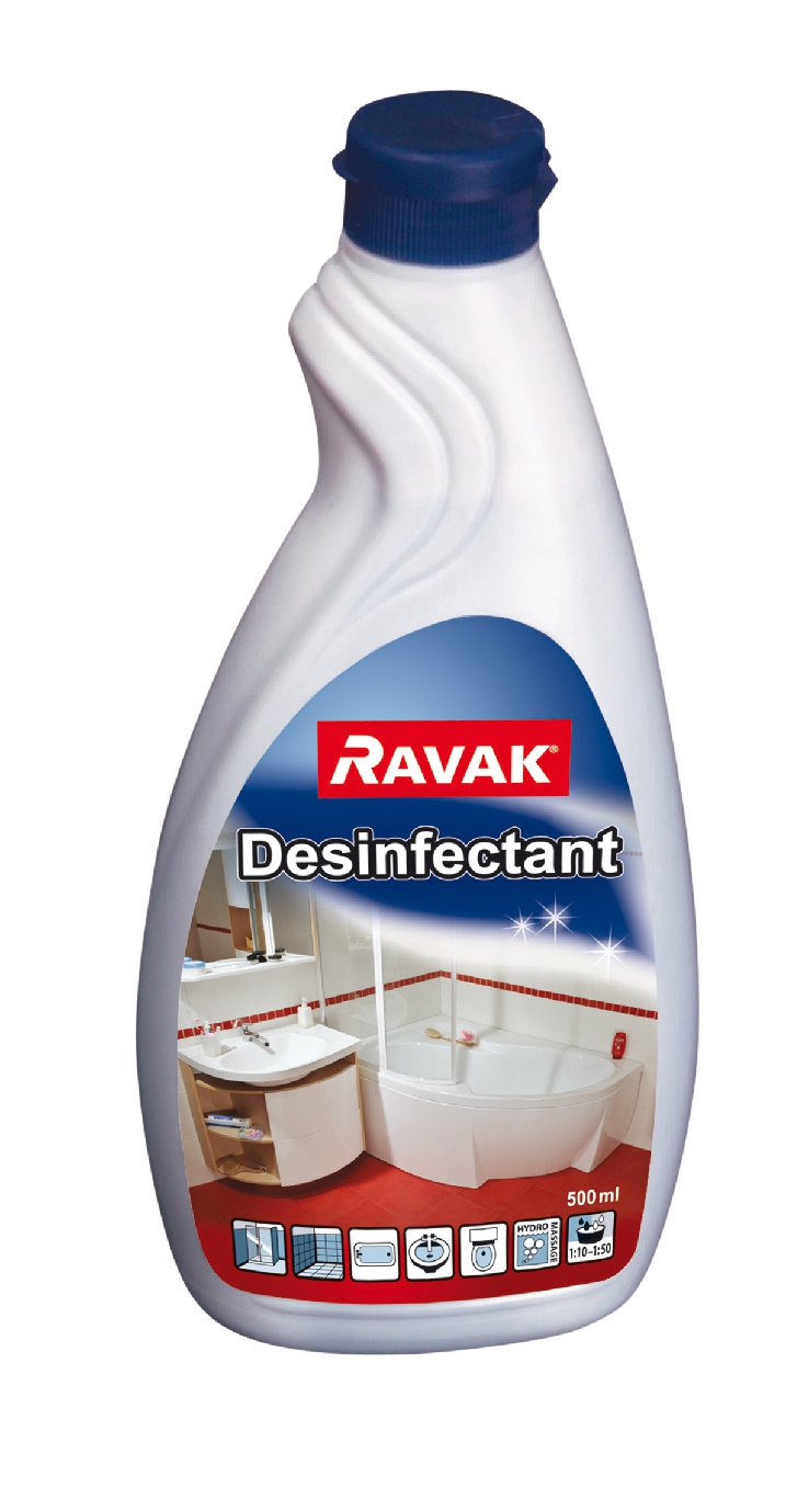 - Добавляем в ванну чистящие средства для акриловых ванн с дезинфицирующим эффектом («RAVAK Desinfectant», «Тим Профи» или аналогичные).