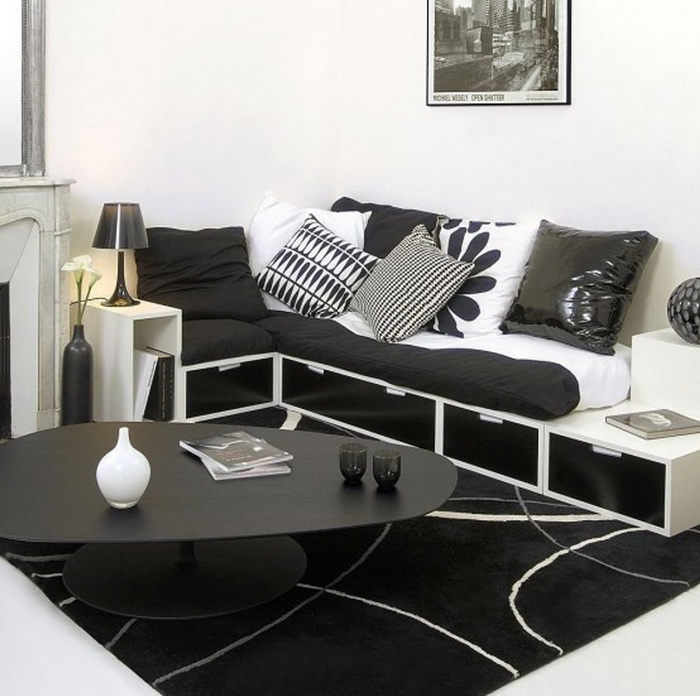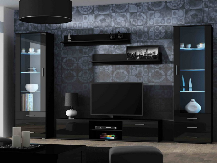Черный, как и белый — это основа цветной палитры. Но в отличие от белого, чёрный требует к себе большей осторожности. Это, пожалуй, два цвета, которые никогда не выходили из моды. Черная гостиная погружает Вас в атмосферу тайны и мистики. Это цвет гламура и изысканности, но одновременно, это очень сильный цвет и иногда может выглядеть пугающе.