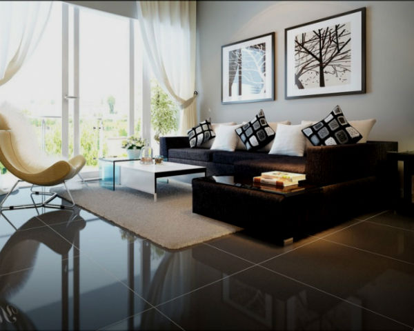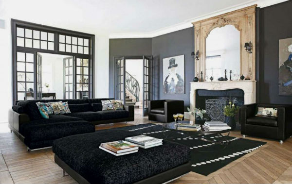 Черный интерьер гостиной: