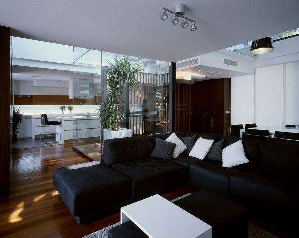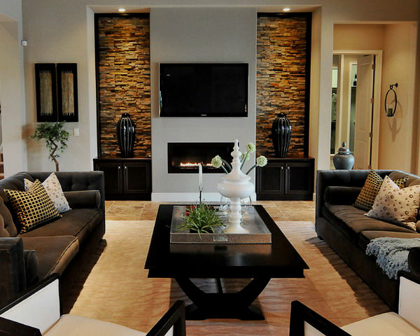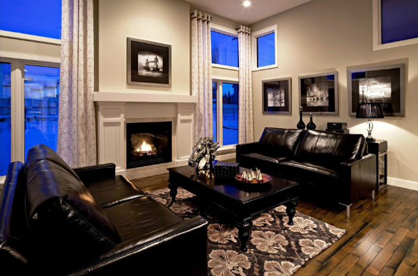 - Черный интерьер гостиной: