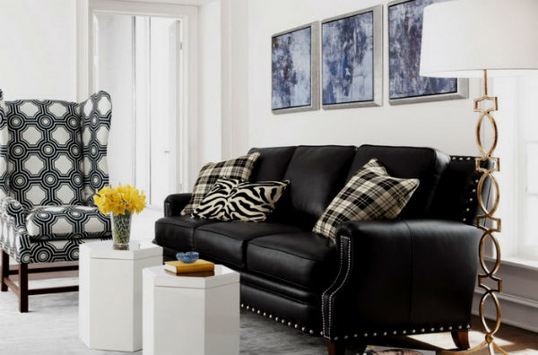 Чтобы черный диван гармонично вписался в интерьер гостиной комнаты, необходимо правильно его подобрать к тому или иному интерьерному стилю.