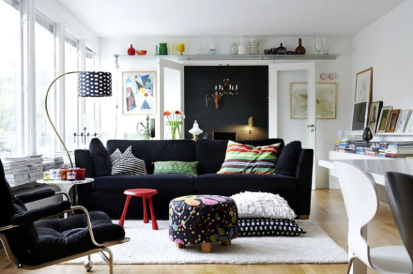 Черный диван в интерьере.