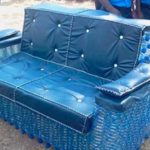 Из пластиковых бутылок можно сделать не только дом и ограду, их используют и как основу для мягкой мебели. Идея в том, чтобы для каркаса использовать не древесину, а пластиковые ёмкости. С закрученными плотно крышками они имеют высокую несущую способность, а собранные в блоки, вполне в состоянии выдерживать нагрузку до 100 кг и больше.