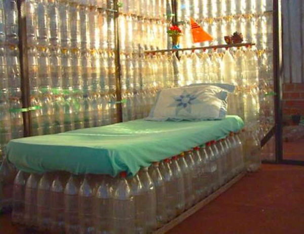 Кровать из пластиковых бутылок… нужен хороший матрас, а основание сделать не слишком сложно