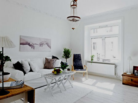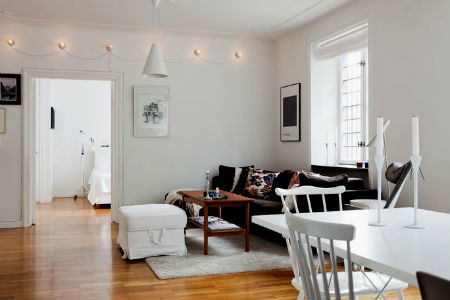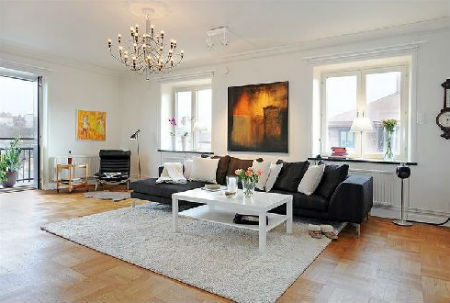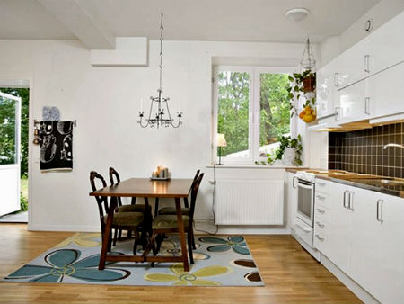 Полы. Истинно шведский дизайн интерьера предполагает наличие полов, покрытых длинной доской, выкрашенной в белый цвет, но со временем мода на деревянные полы претерпела изменения, и в наши дни в шведских домах, все чаще можно наблюдать крупную керамическую плитку, любого пастельного тона.