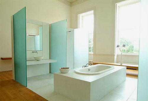 Что касается оттеночной палитры такой ванной комнаты, то здесь приветствуются не только светлые цвета, но и вполне могут использоваться оттеняющие темные тона: серые, коричневые и черные. Но все же преобладающим цветом должен оставаться белый — это важно! Что касается выбора сантехники, в шведской ванной будет замечательно смотреться традиционной, прямоугольной формы ванна, с хромированными смесителями и фурнитурой. Разбавить дизайн можно необычной формы зеркальной рамой, стильными настенными бра, а также цветными полотенцами.