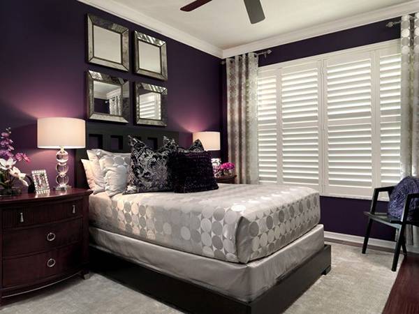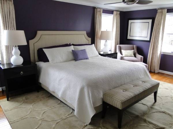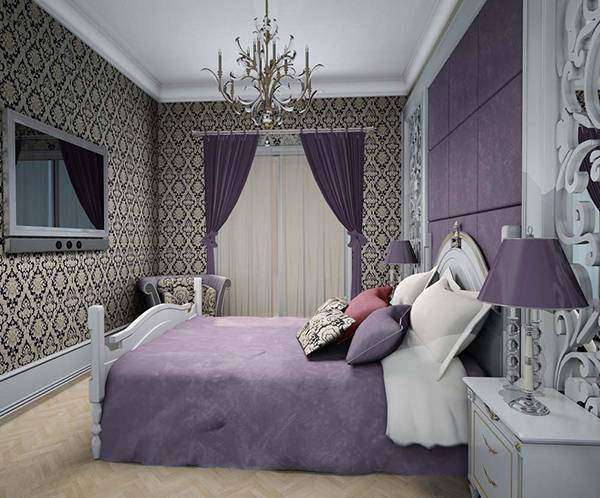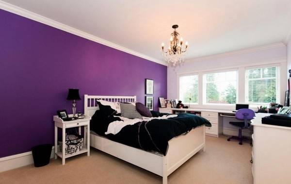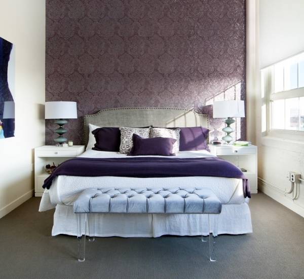 Фиолетовые обои в спальне или покраска стен