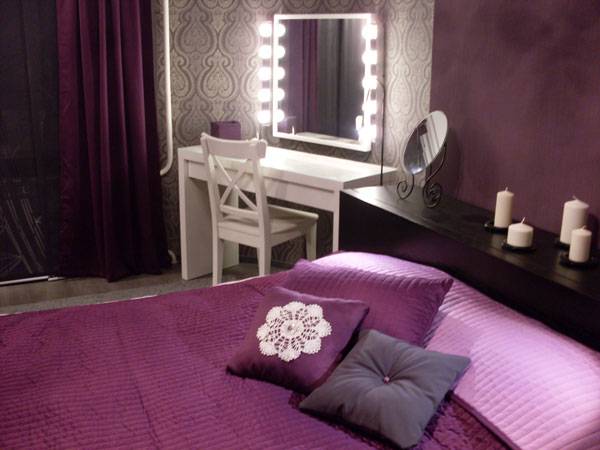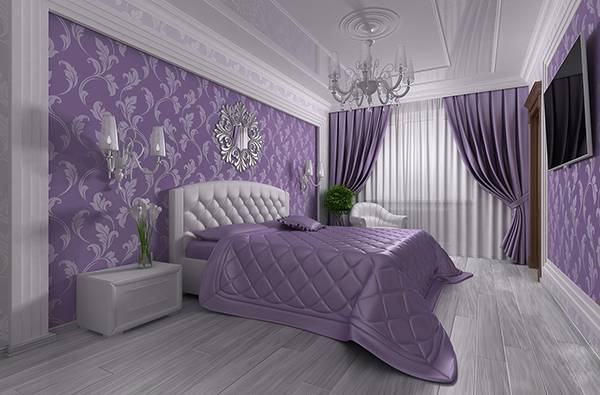 Спальня в фиолетовых тонах — выбор многих