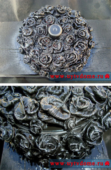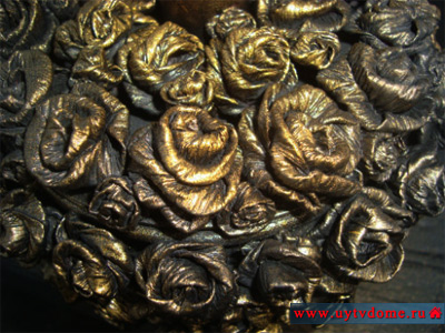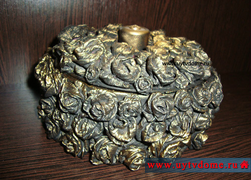 Как видите, декор шкатулки бумажными розами вовсе не сложен, а какой получился результат – восторг. С первого взгляда и не скажешь, что изделие сделано из бумажных цветов. Вот так, зная прием правильной покраски, можно из обычного бумажного изделия, создать эффектное бронзовое творение с намеком на ковку по металлу.