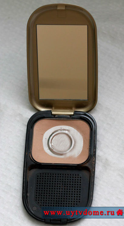 ● Из пудреницы удаляем  металлический лоточек (тот самый, где раньше была пудра), выбрасываем спонж. Промываем футляр под проточной водой с мыльным раствором, обезжириваем поверхность спиртом или ацетоном.
