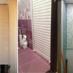 Более серьезный и долговечный вариант — закрыть полки в туалете роллетом. Более серьезный он в плане затрат и сложности установки. Надо будет установить направляющие и закрепить вверху барабан.
